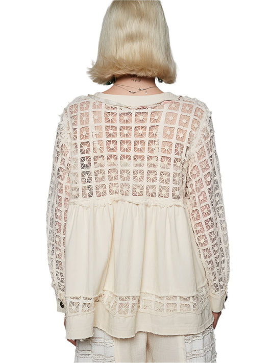 Top Jacket Ivory Ballon Sleeve Textured Regular Fit Uwt156