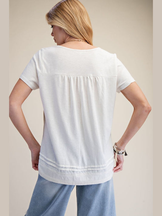 Top Pullover Knit White Lace Trim Short Sleeve Women's ET19023