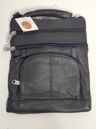 Crossbody Multi Pocket Organizer Navy Blue Leather 876nb