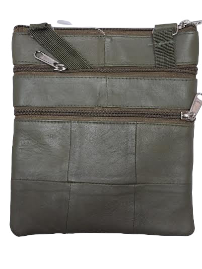 Crossbody Sling Bag With Organize Multi Pocket Green Leather C14G