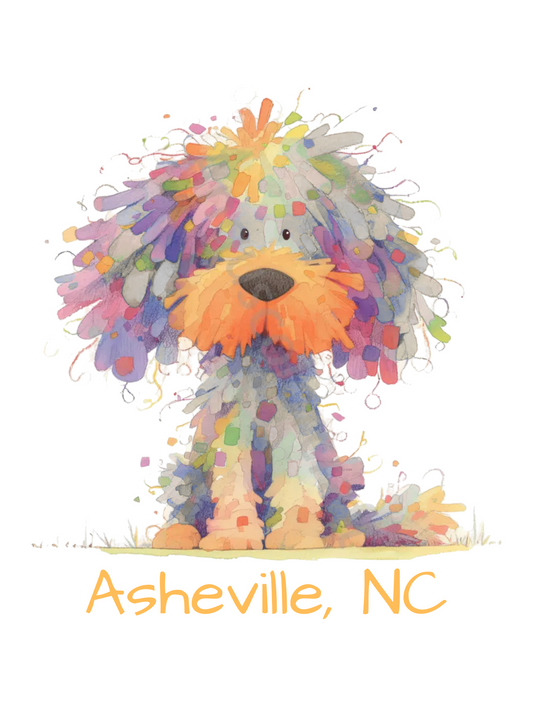 Tee Shirt Wired Hair Dog Multi Color Comfort Colors Brand Asheville logo