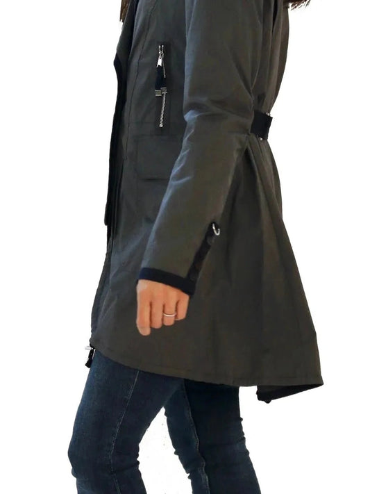 Rain Jacket Double Breast 3/4 Length With Belt Charcoal Amber Women's