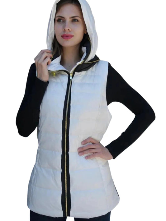 Vest Down Puffer With Hood And Side Zipper Vents Antique White Kara Women's