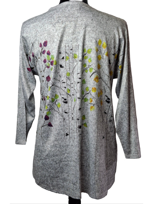 Shirt Pullover Grey Multi Abstract Colored Long Sleeve Women's H3140240