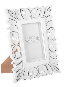 Picture Frame Distressed Carved White Scroll 4x6" Cb184987