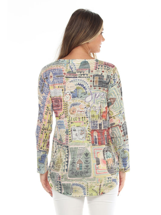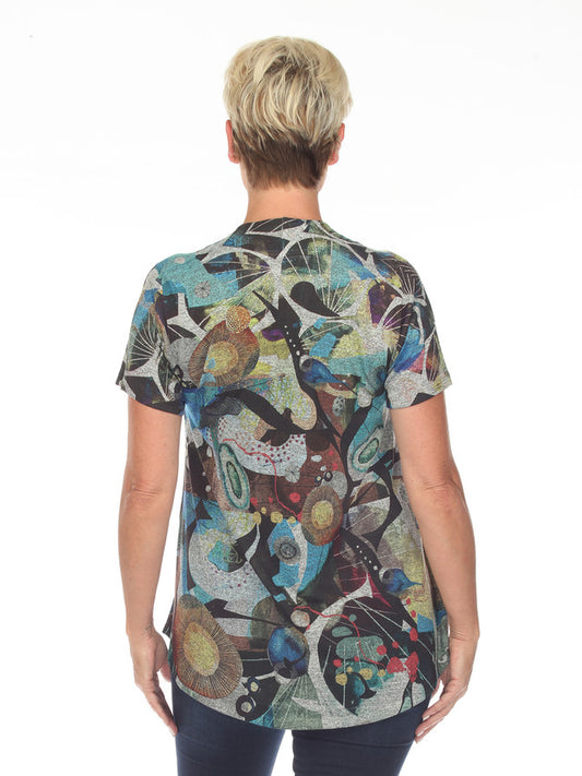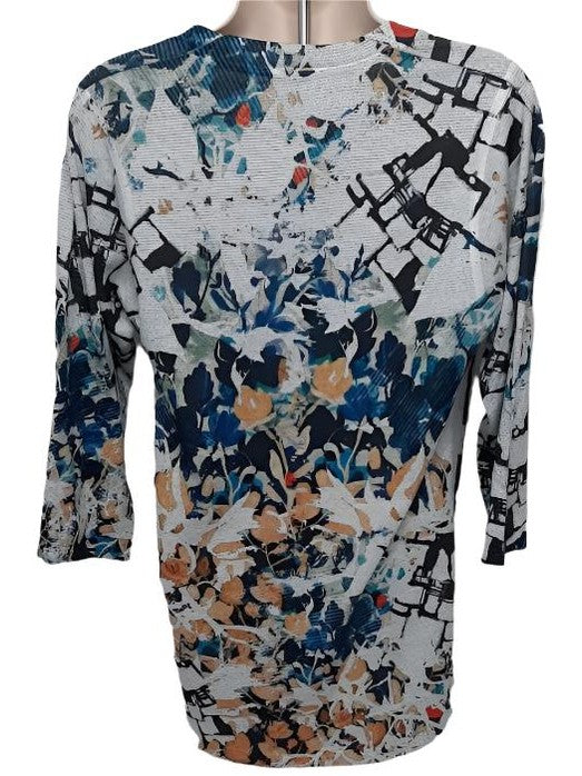 Top 3/4 Sleeve Crew Neck Multi Sky Bloom Print Women's t208rb mm35