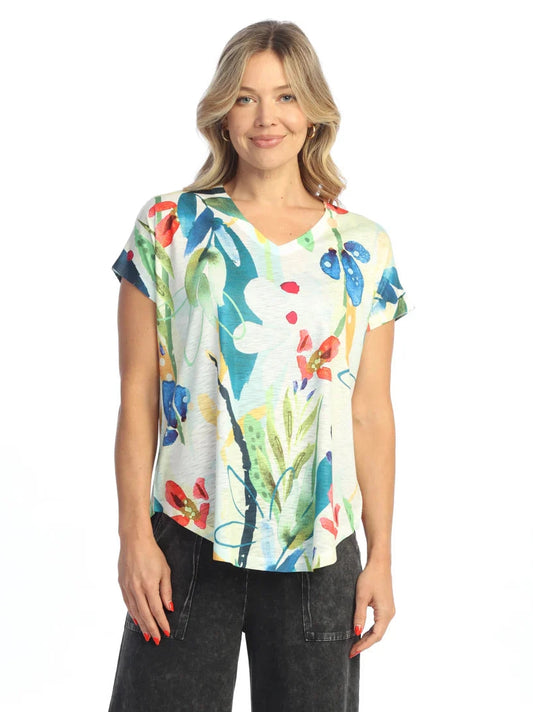 60-2053 Blue/Green/Red Floral Rio V Neck Women's Top