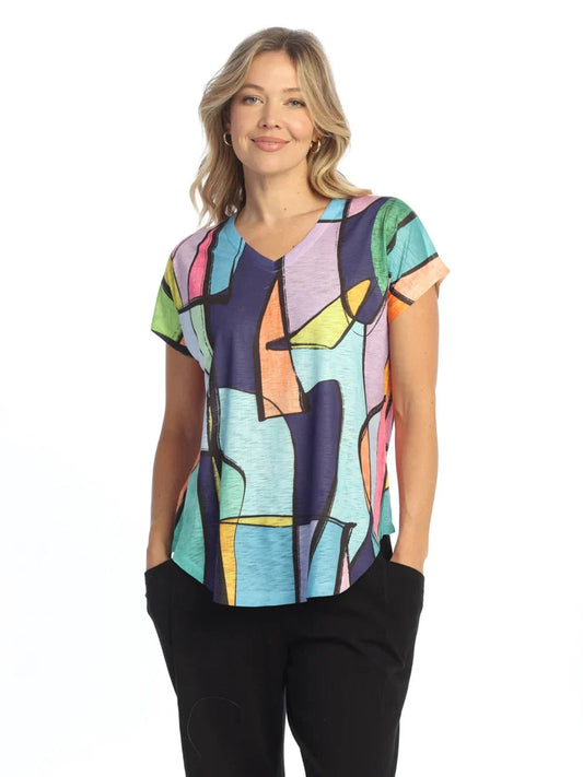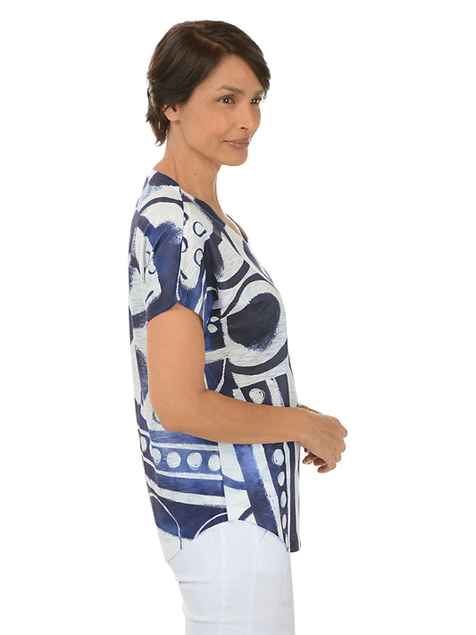 60-2068 Vita Multi Marble Short Sleeve V Neck Women's Top