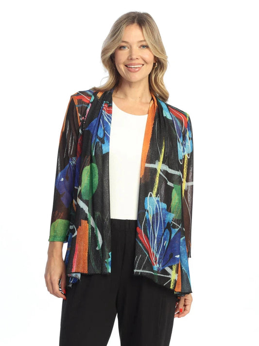 CM3-2081 Rosalie 3/4 Sleeve Crepe Mesh Cardigan Womens Top