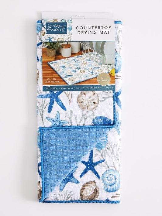 Drying Mat Micro Fiber Counter Top Blue Escape Shells R7924