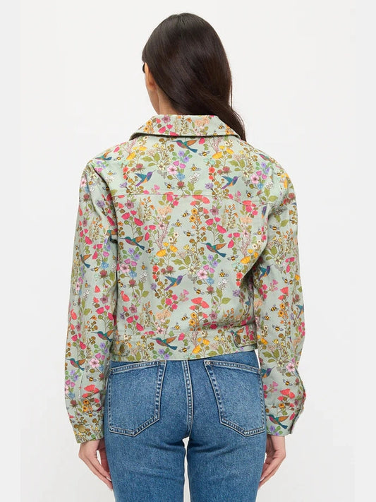 Jacket Green Floral Hummingbird/Bee Print Women's SM26082