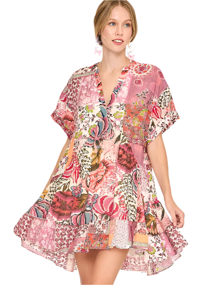 Sold outTiered Dress / Tunic Pink Mix K9861