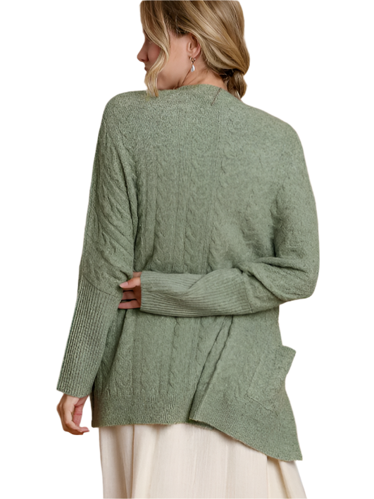 Top Pullover Green Floral Mix Puffy 3/4 Sleeve K1210