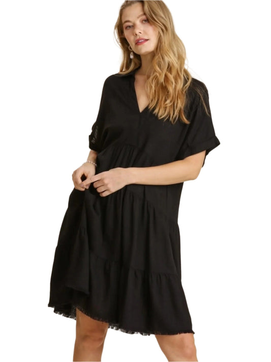 Dress Lined 2 Pocket Collared Black Mix Women's c5568
