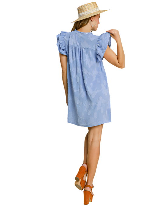 Dress Light Blue Mini Short Double Ruffled Sleeves k9342