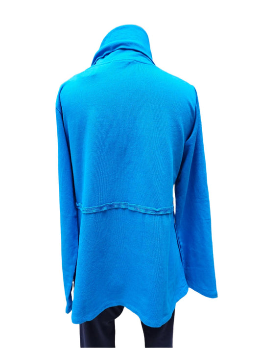 Cowl Neck Pullover Left Side Button French Blue Women's 7737Fb