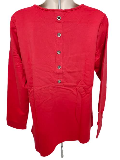 Top Scoop Neck Button Back 2Pocket Tango Red Women's 7736TA