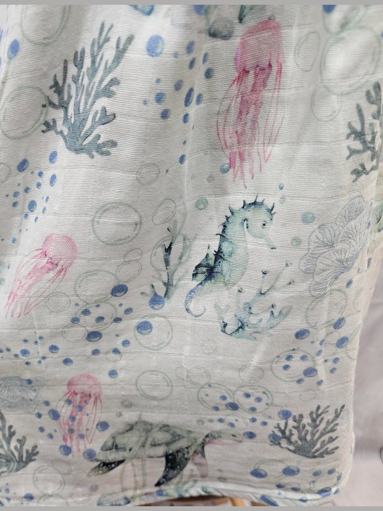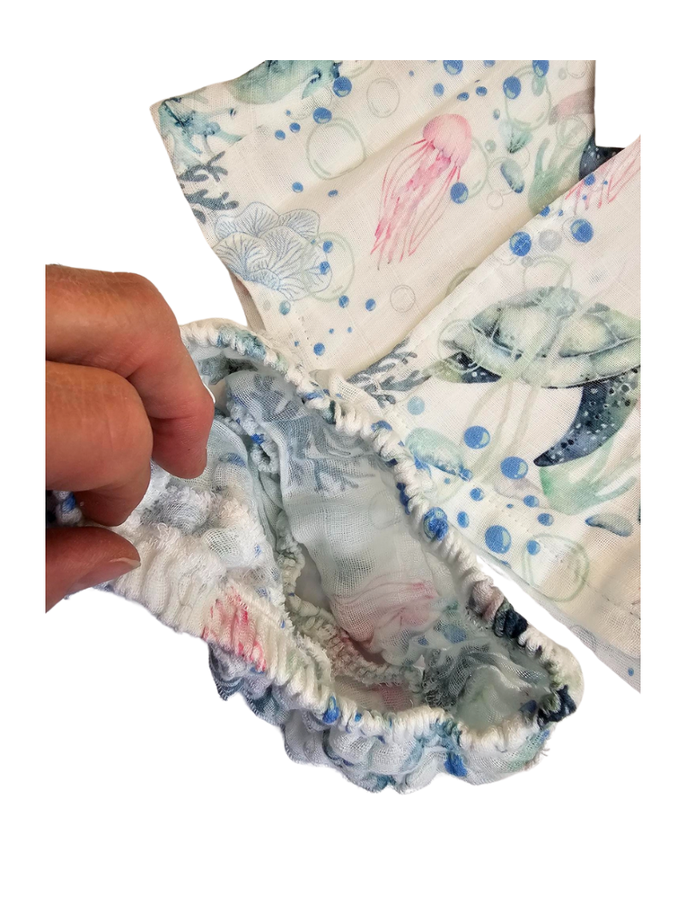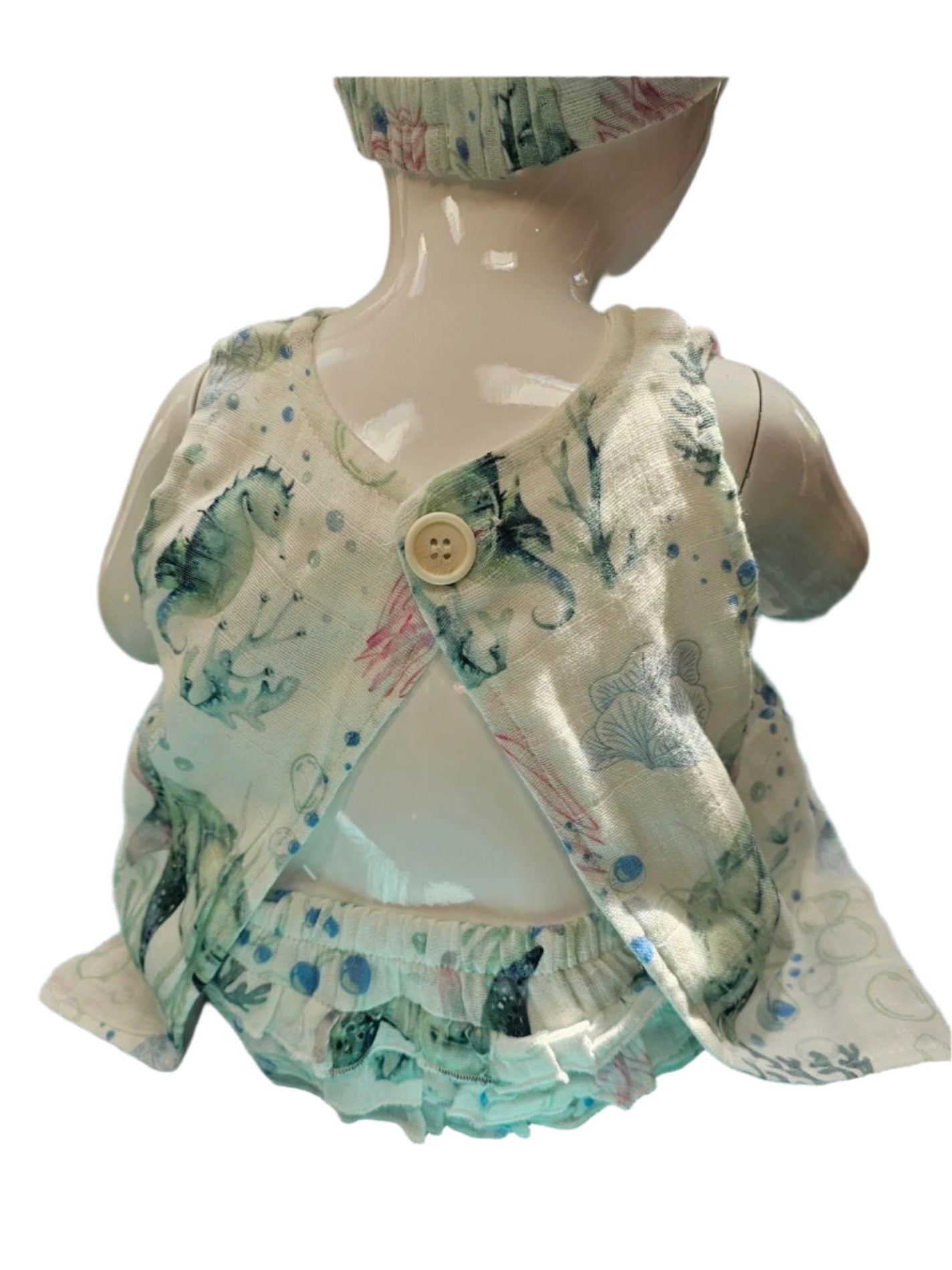 Dress - Split Open Back - Happy Turtles - 100% Cotton / Gauze - with bloomers - HAPTUR241