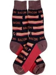 A luxurious men's sock designed to bring a sophisticated but fun flair to any outfit. A combination of comfort and style, this unique novelty sock features a bacon-themed design for a touch of whimsy and sophistication. With its exclusive pattern, this luxurious crew sock is sure to be a favorite.