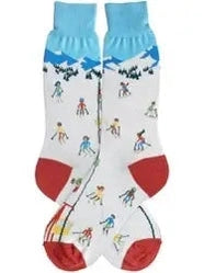 Don't "sweat" your sock game - these unique novelty crew socks will keep your feet warm and your style cool. Whether you're skiing or just lounging, these snow skier socks have you covered! Grab a pair and hit the slopes for some fun!