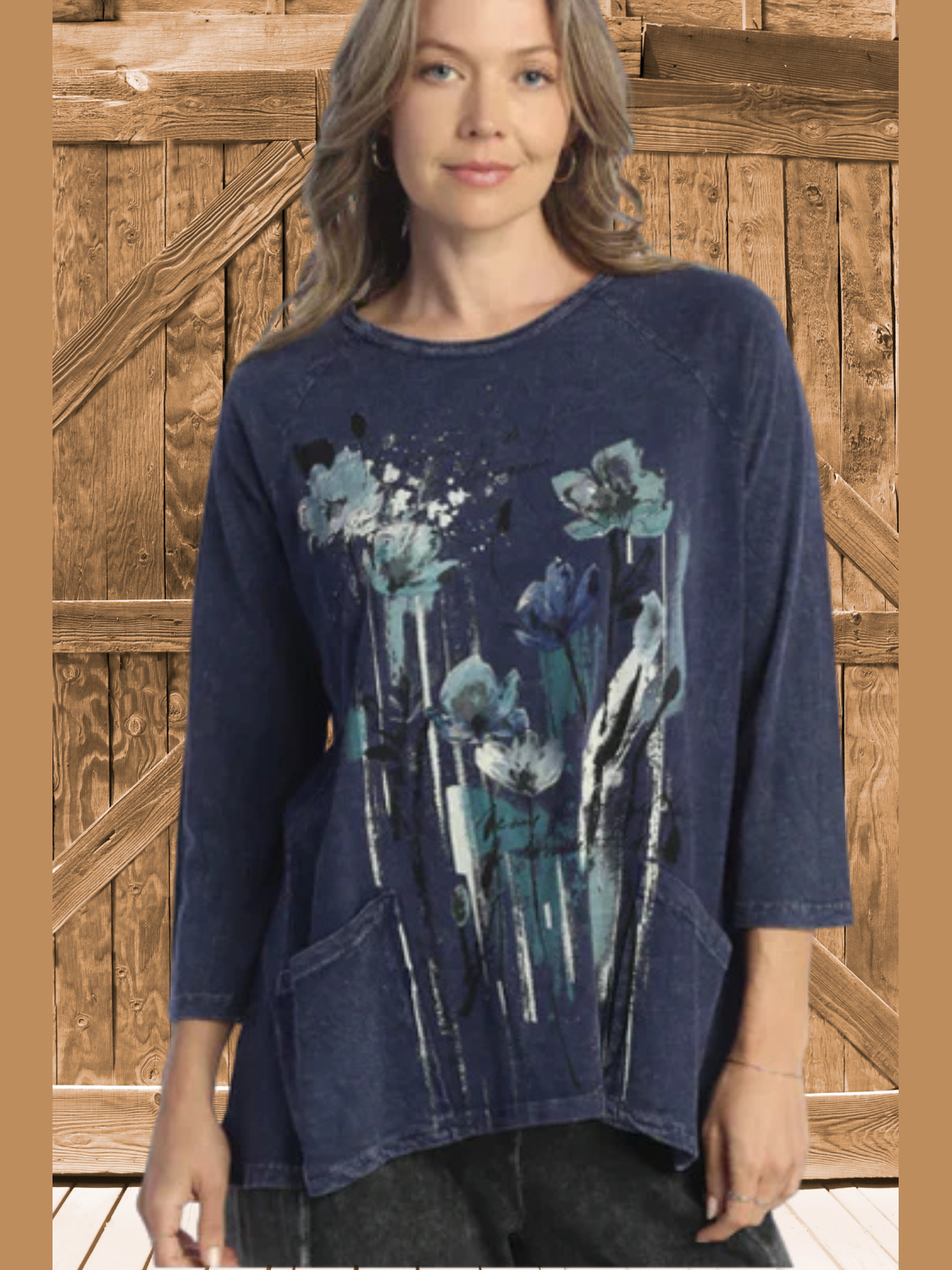 Jess & Jane-m12Den-DenimFlower Print-2Pocket-Women's Top