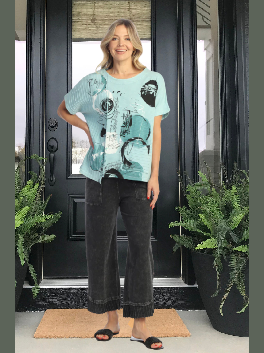 Jess & Jane M124-2100 Tempo Mint Abstract 1 Pocket Short Sleeve Women's Top
