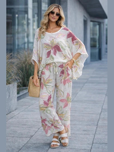 Marisima-Pants White Floral Linen 2 Pocket Wide Leg Women's One Size 200613