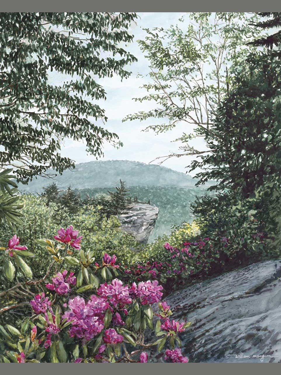 The aura of sitting on top of Grandfather Mountain and looking at the Blue Ridge Mountains is captured in this beautiful painting. 550 piece jigsaw puzzle.
