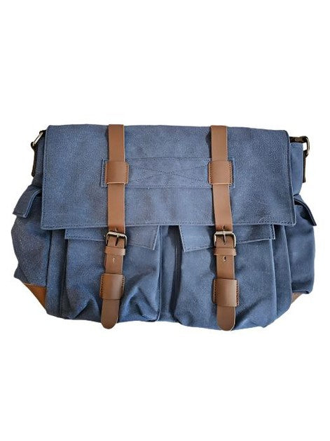 Shoulder Messenger Bag - Canvas & Leather - Blue