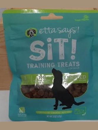 "Train your pup to sit with our Training Treat-Sit-Cheddar Cheese! Made with real cheddar cheese and a 6oz size, these treats are sure to please even the pickiest of dogs. Say goodbye to boring training sessions and hello to delicious rewards!"